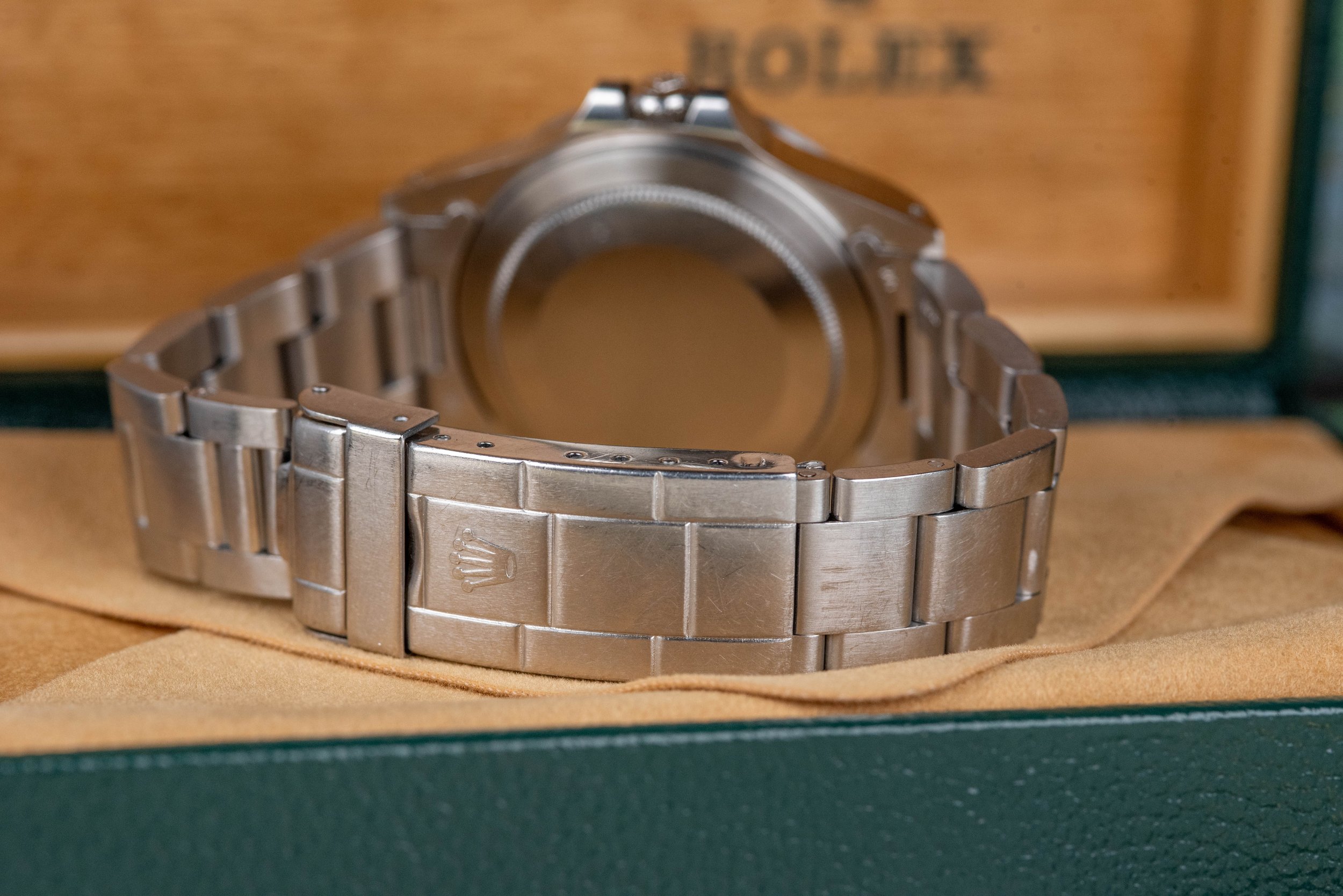 The watch is in very fine used, vintage condition and time-graphs well. Calibre 3085 made the 16550 the first Explorer to allow independent adjustment of the GMT hand for tracking other timezones. The movement is exceptionally clean. Amplitude is the complaint, between 200-250 degrees while rate keeping reads between -4 and +7 seconds under our observation. The movement functions entirely correctly and features the jumping hour hand for setting GMT hand and date. It comes with box and hang tag. It has not been pressure tested.